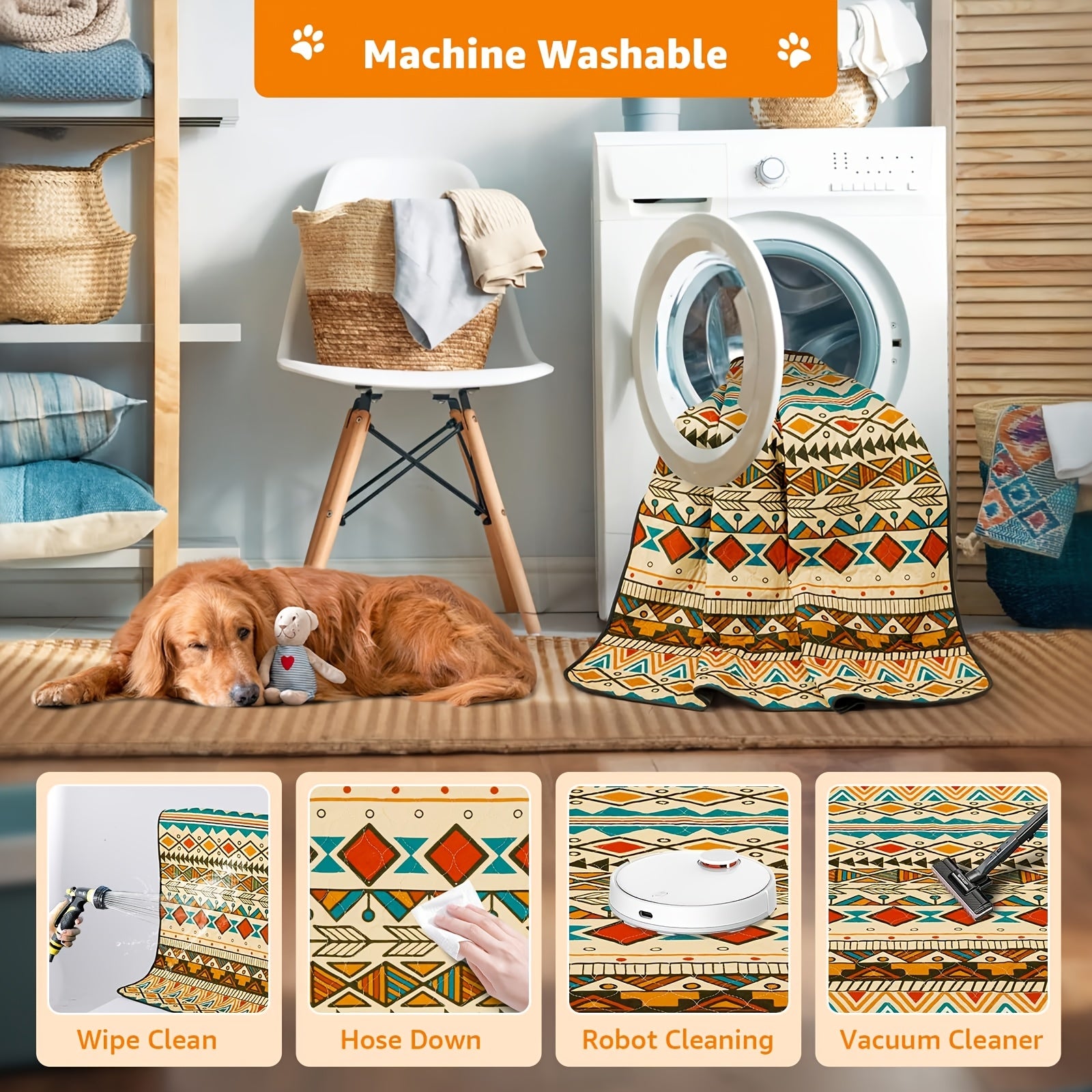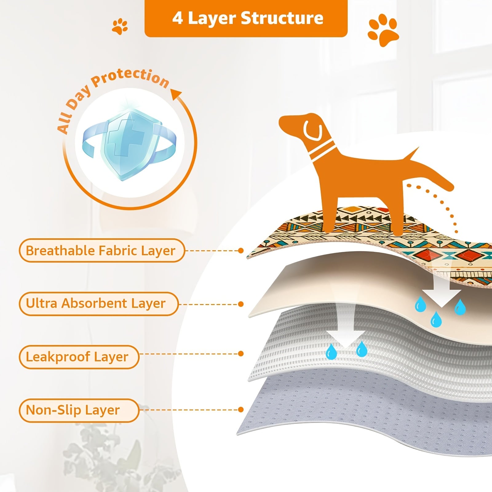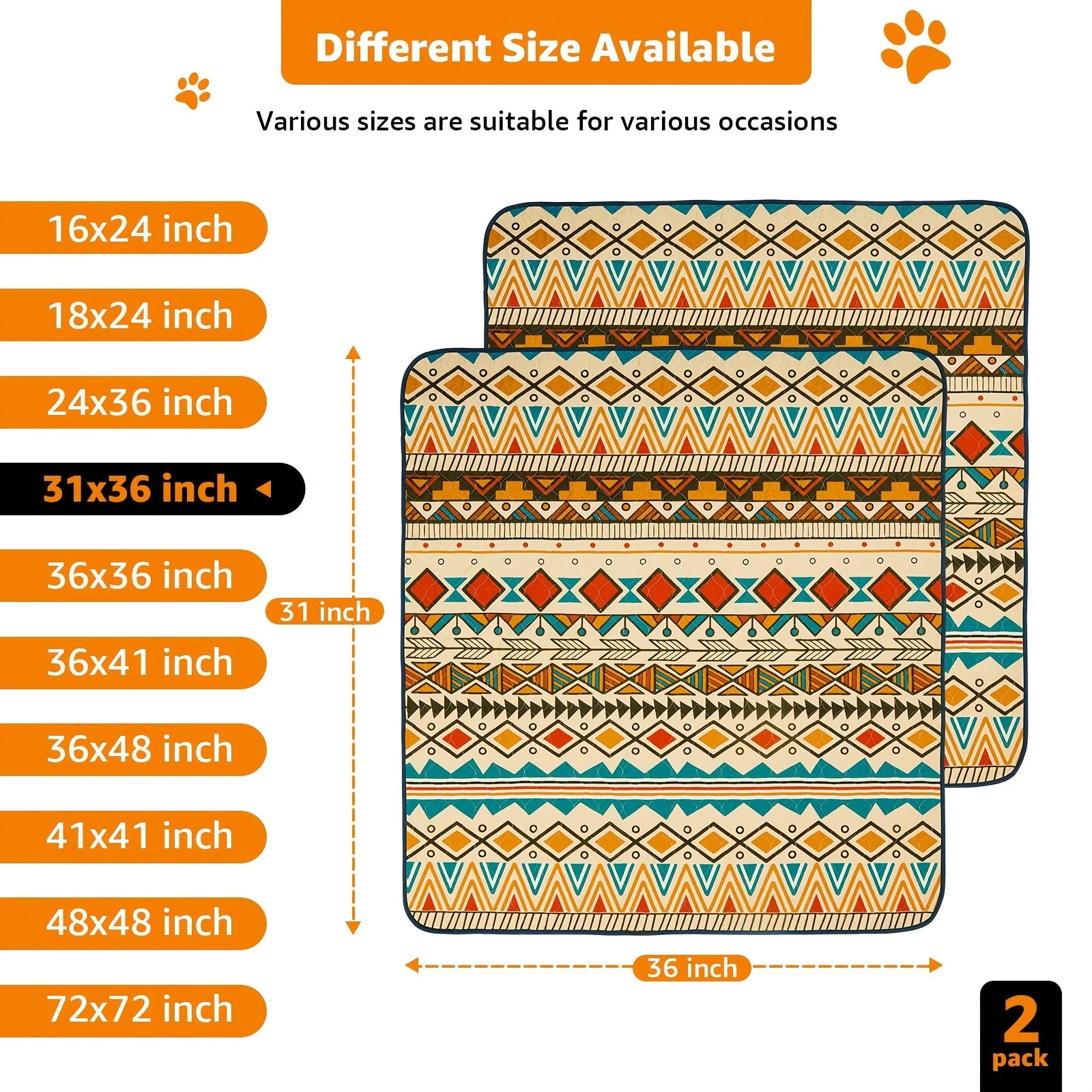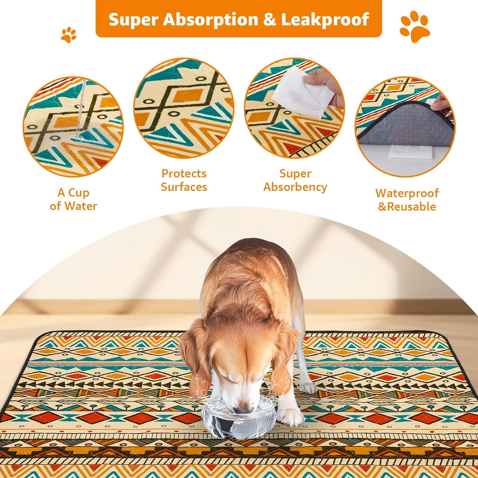 Chic Design: The reusable dog potty pads feature vintage tribal patterns, enhancing the decor of your floor, couch, bedroom, and even your vehicle and outdoor gatherings, seamlessly blending practicality with style.