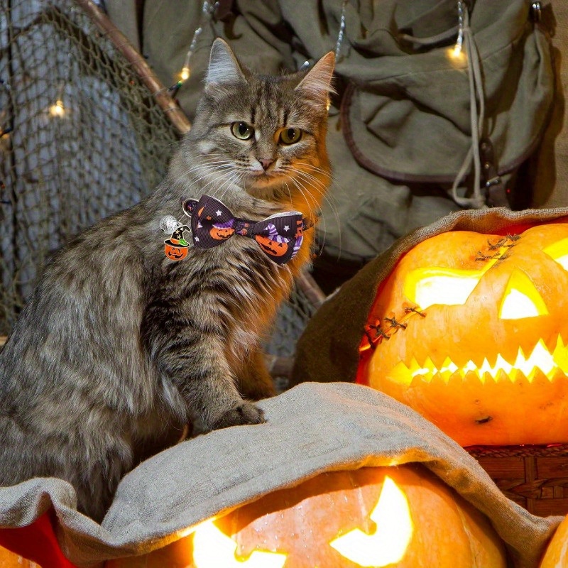 4 Pack Halloween Cat Collar with Bow Tie and Bell