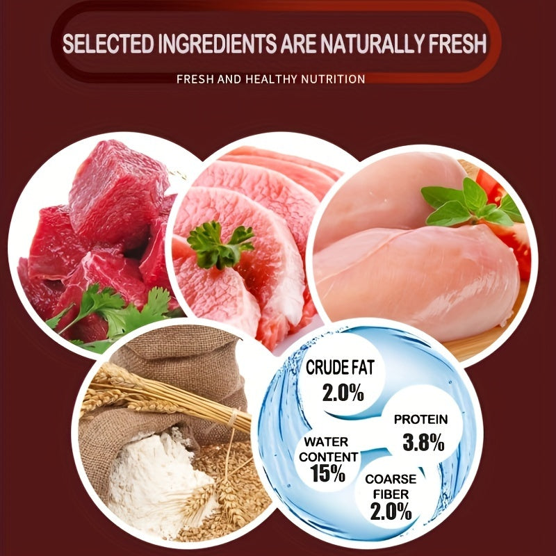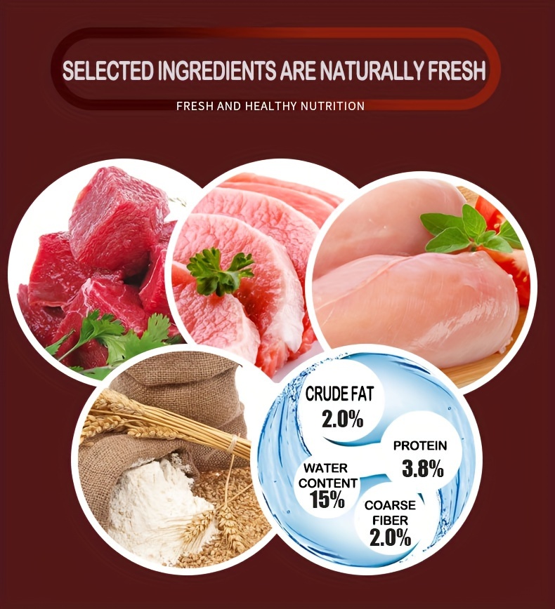 Materials: Corn starch, beef, chicken liver water, refined butter, soy protein, glycerin