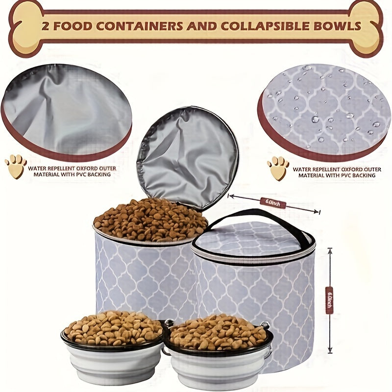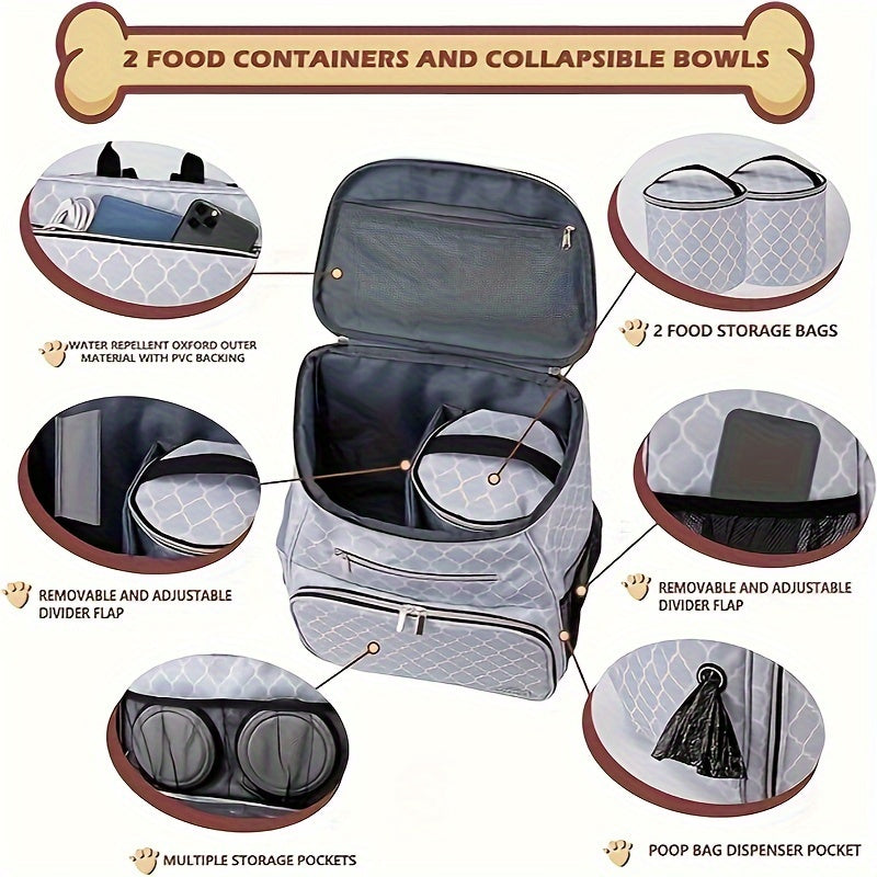 Airline Approved Pet Supplies Backpack, Dog Travel Backpack With 2 Silicone Collapsible Bowls And 2 Food Baskets DLWhite