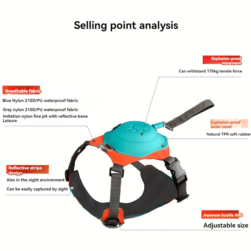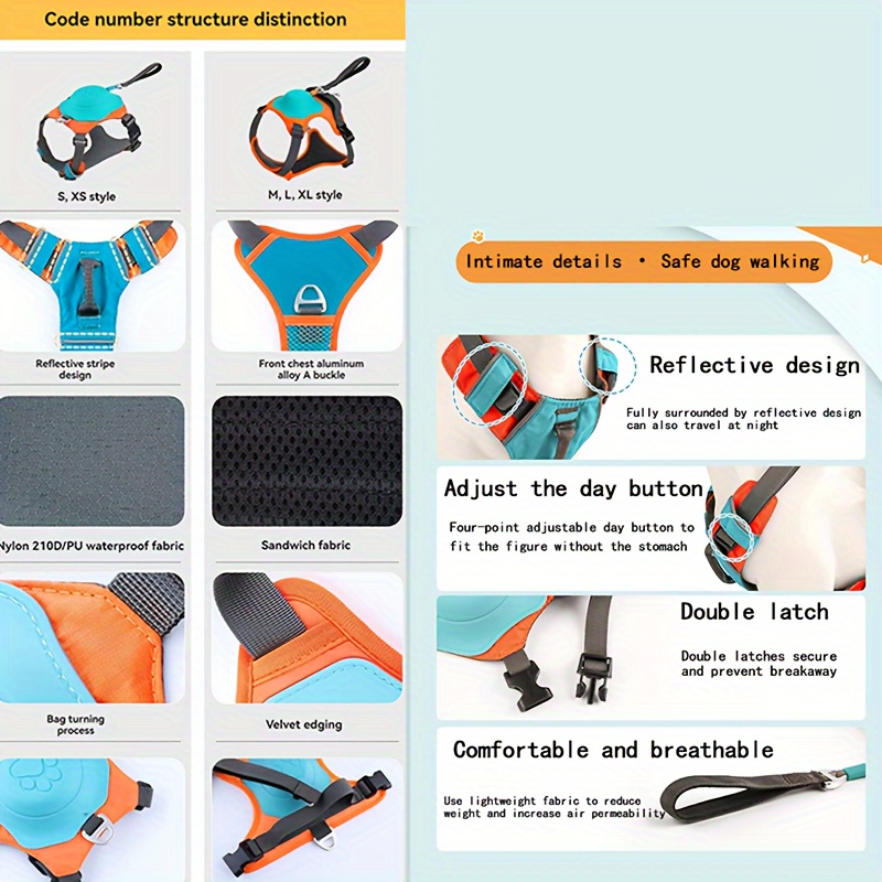Heavy DUTY Dog Chest Back Harness Vest With Retractable Leash